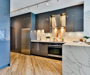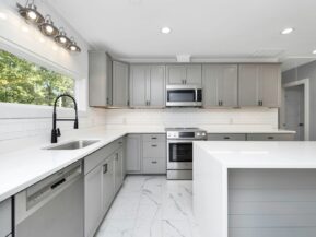 Clean lines and contemporary style define this sleek kitchen transformation with minimalist design, quartz surfaces, and integrated smart appliances.
